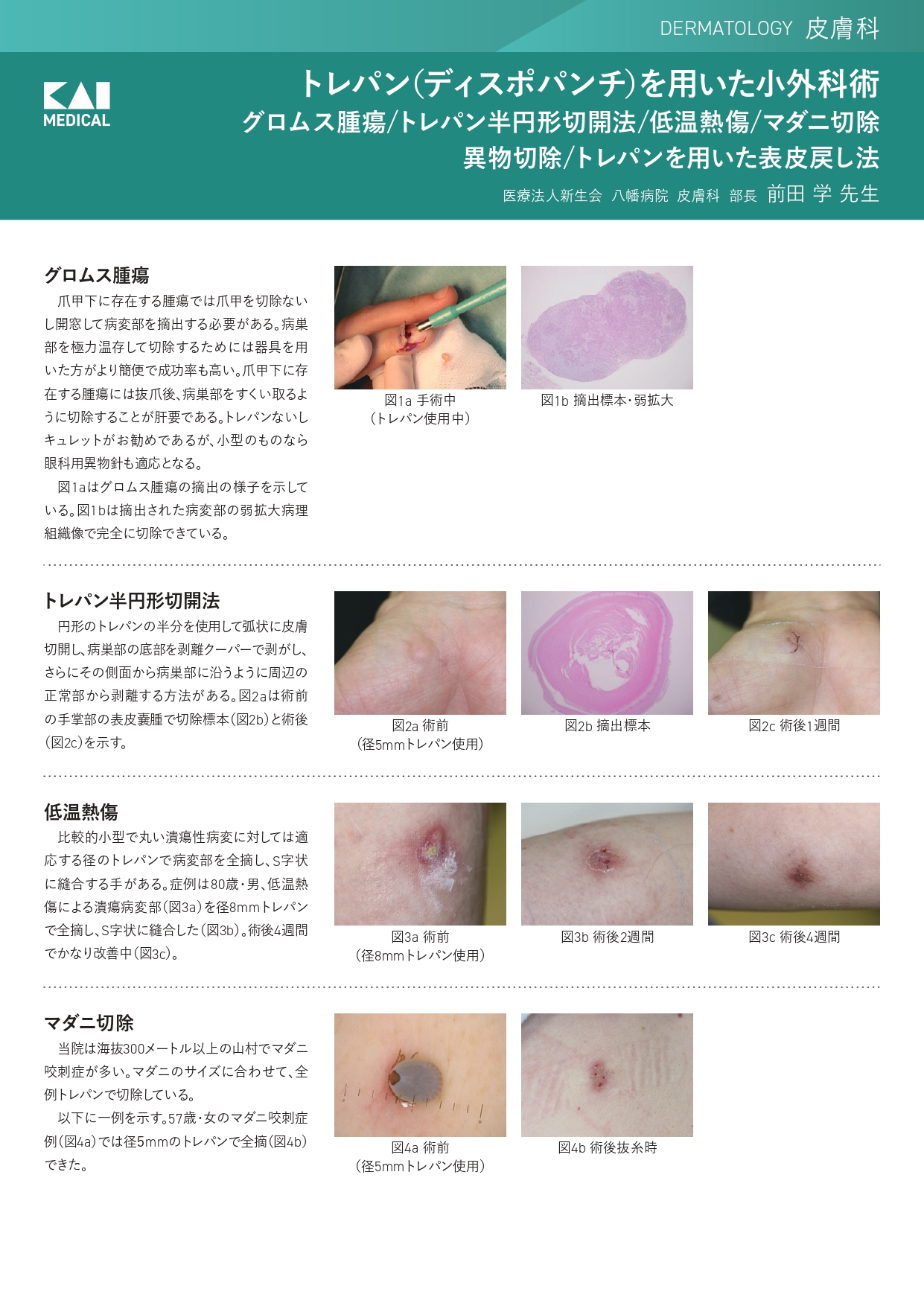 トレパン(ディスポパンチ)を用いた小外科術 グロムス腫瘍/トレパン半円形切開法/低温熱傷/マダニ切除/異物切除/トレパンを用いた表皮戻し法